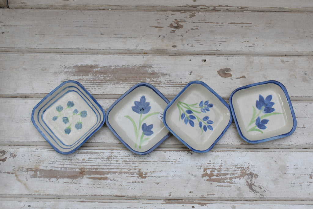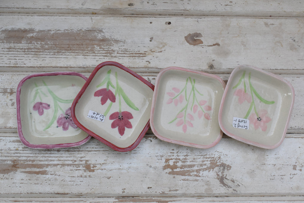 A set of 4 hand-painted canapé plates for any occasion - cocktails, evening tea or coffee morning with the girls! Classic florals in blue, pink, orange, red.