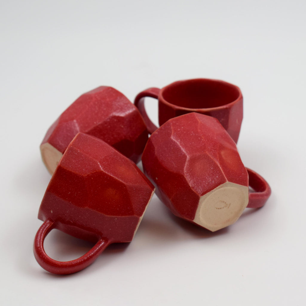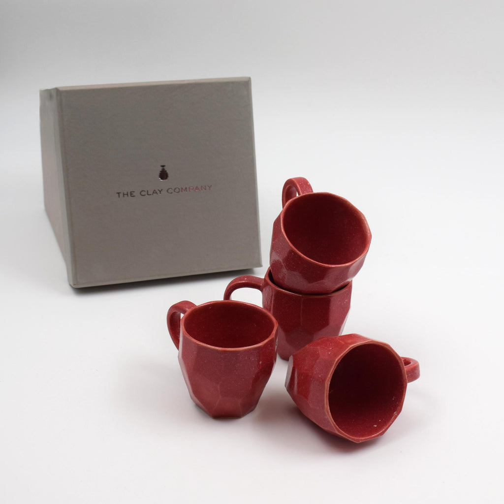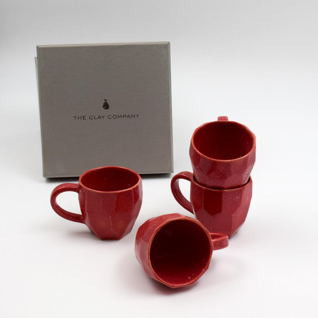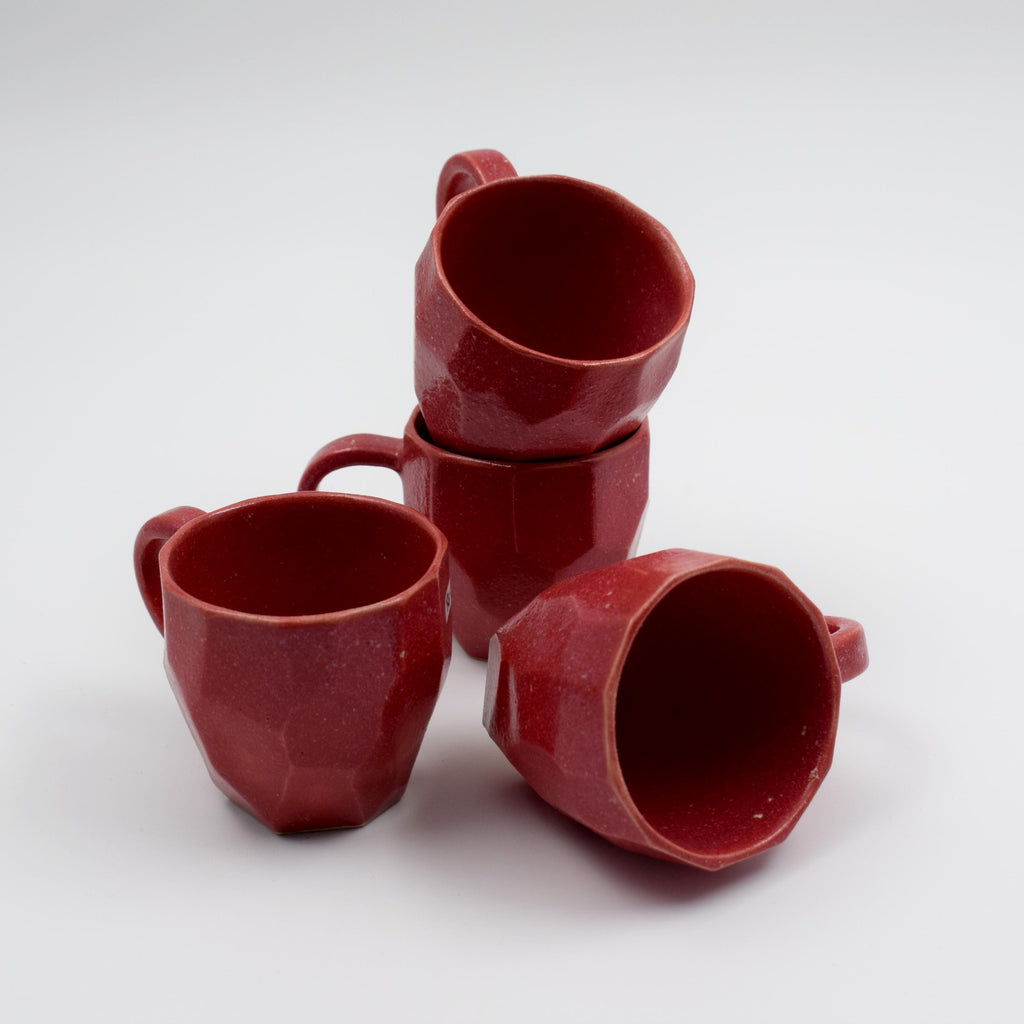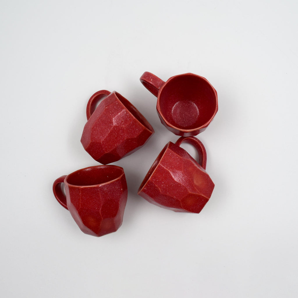 Facetted espresso cups-Red- (set of 4)
