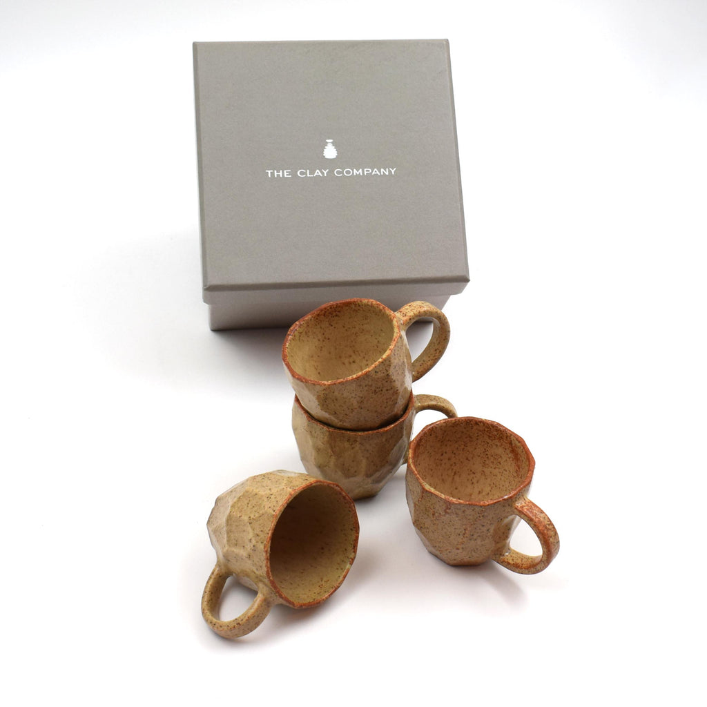 Faceted espresso cups (set of 4) - Fiery Dijon