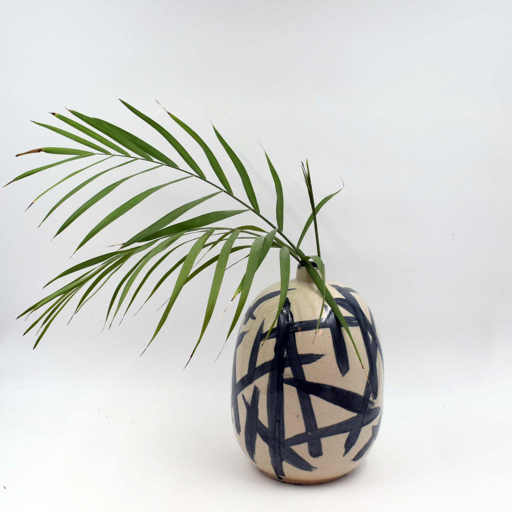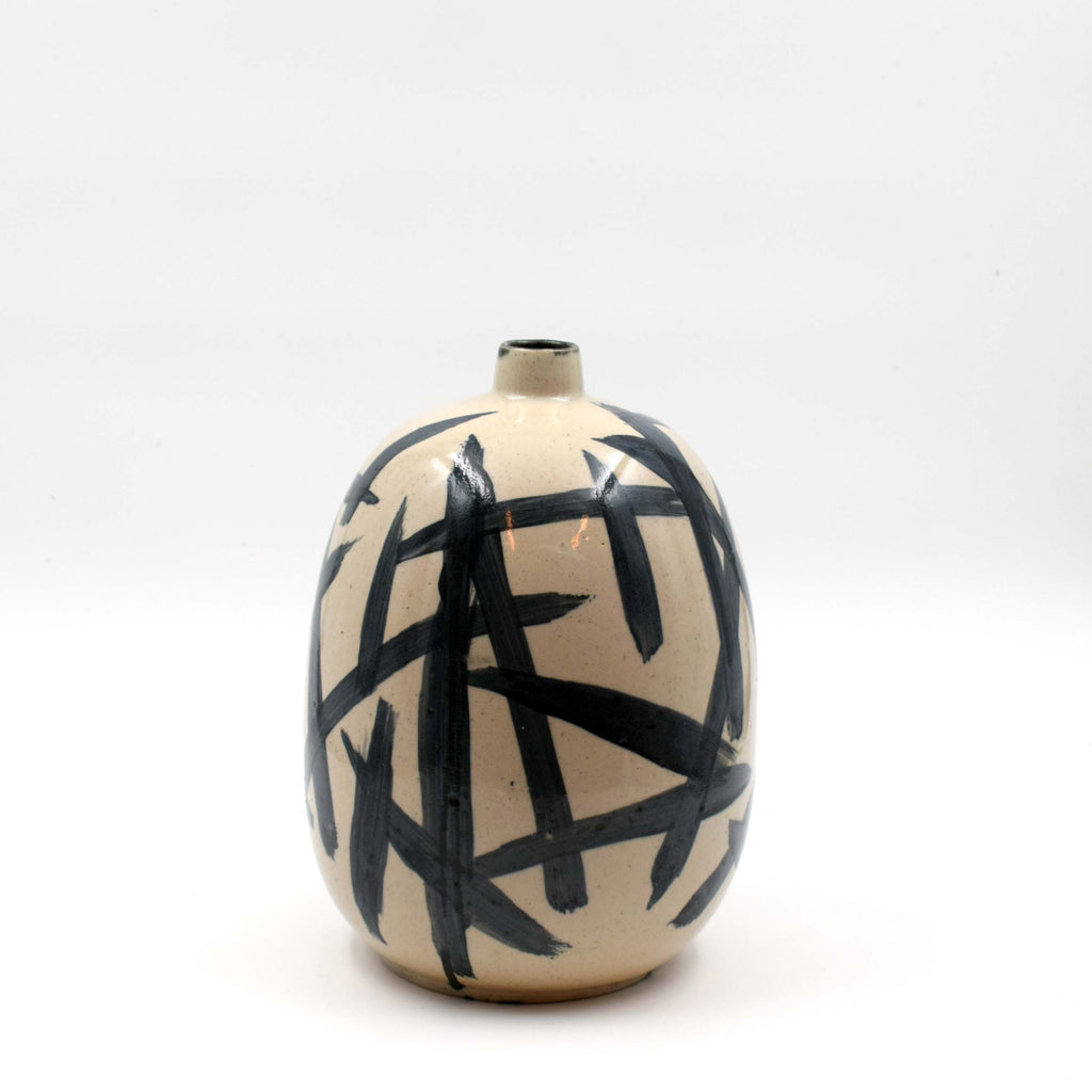 Expertly hand painted, this large bottle vase adds a unique touch to your home decor. Perfect for displaying flowers or as a standalone piece, its craftsmanship and size make it a standout statement in any room. Elevate your space with this one-of-a-kind vase.